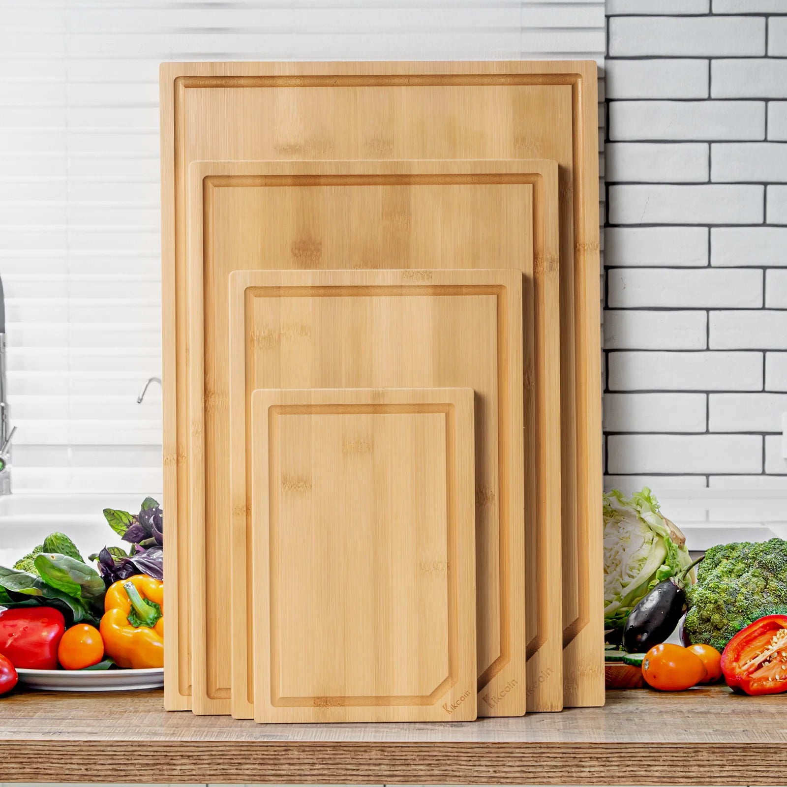 4-piece extra large kitchen bamboo cutting board set, heavy duty cutting board with juice groove, inner handle design.