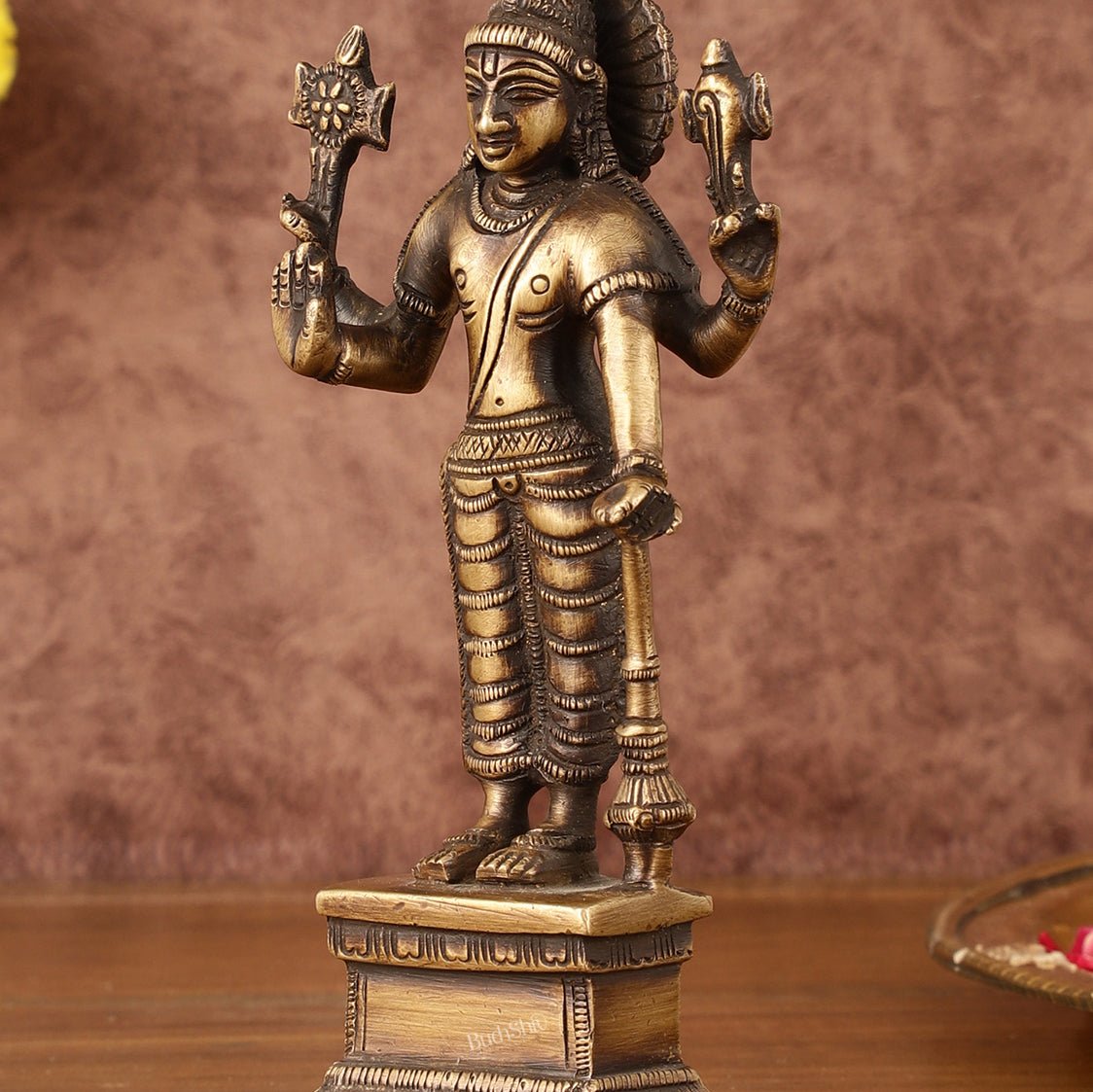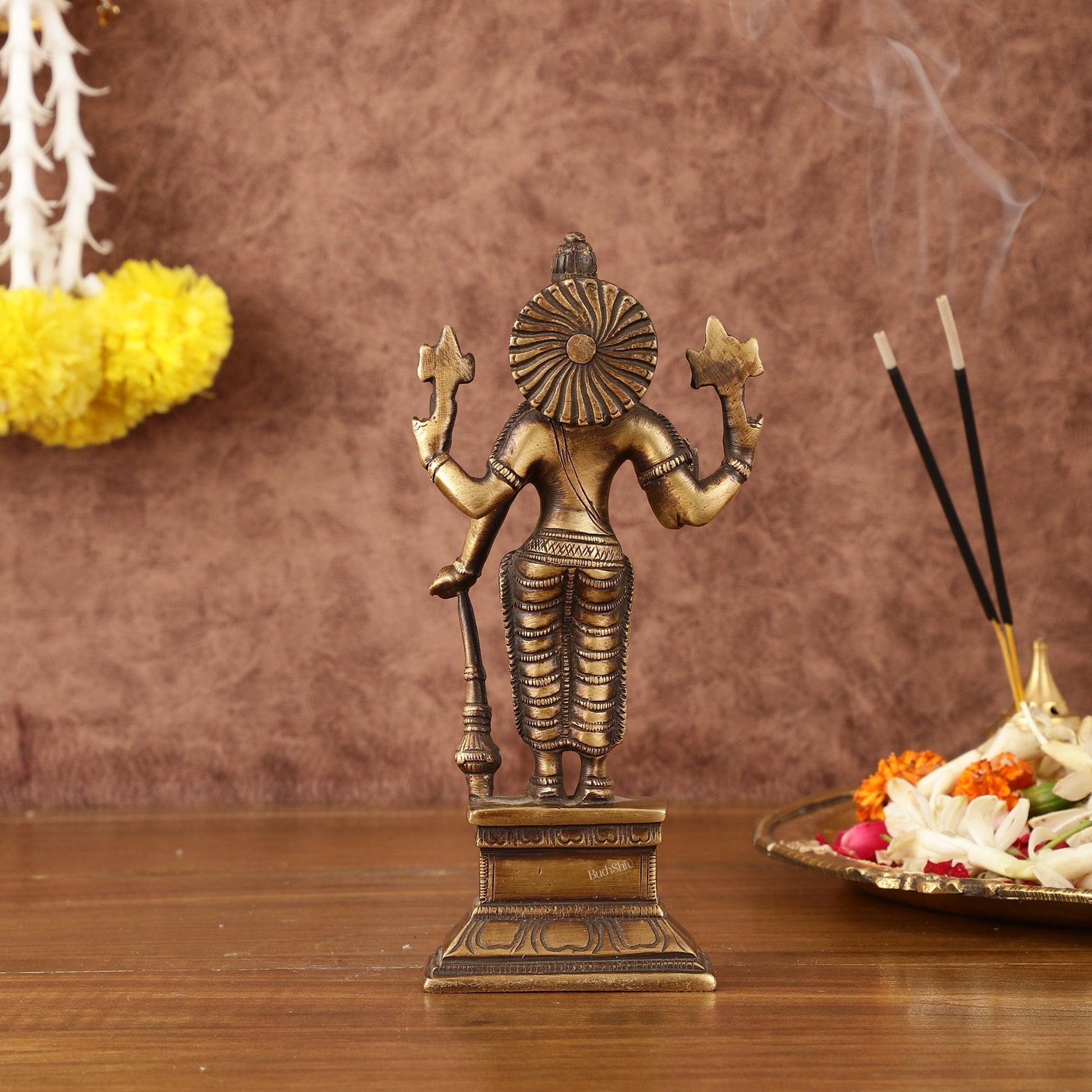 Antique Brass Standing Vishnu Idol - 7" Tall