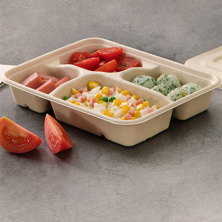 Disposable Four-compartment Lunch Box Lunch Box Environmentally Friendly Biodegradable Paper Pulp