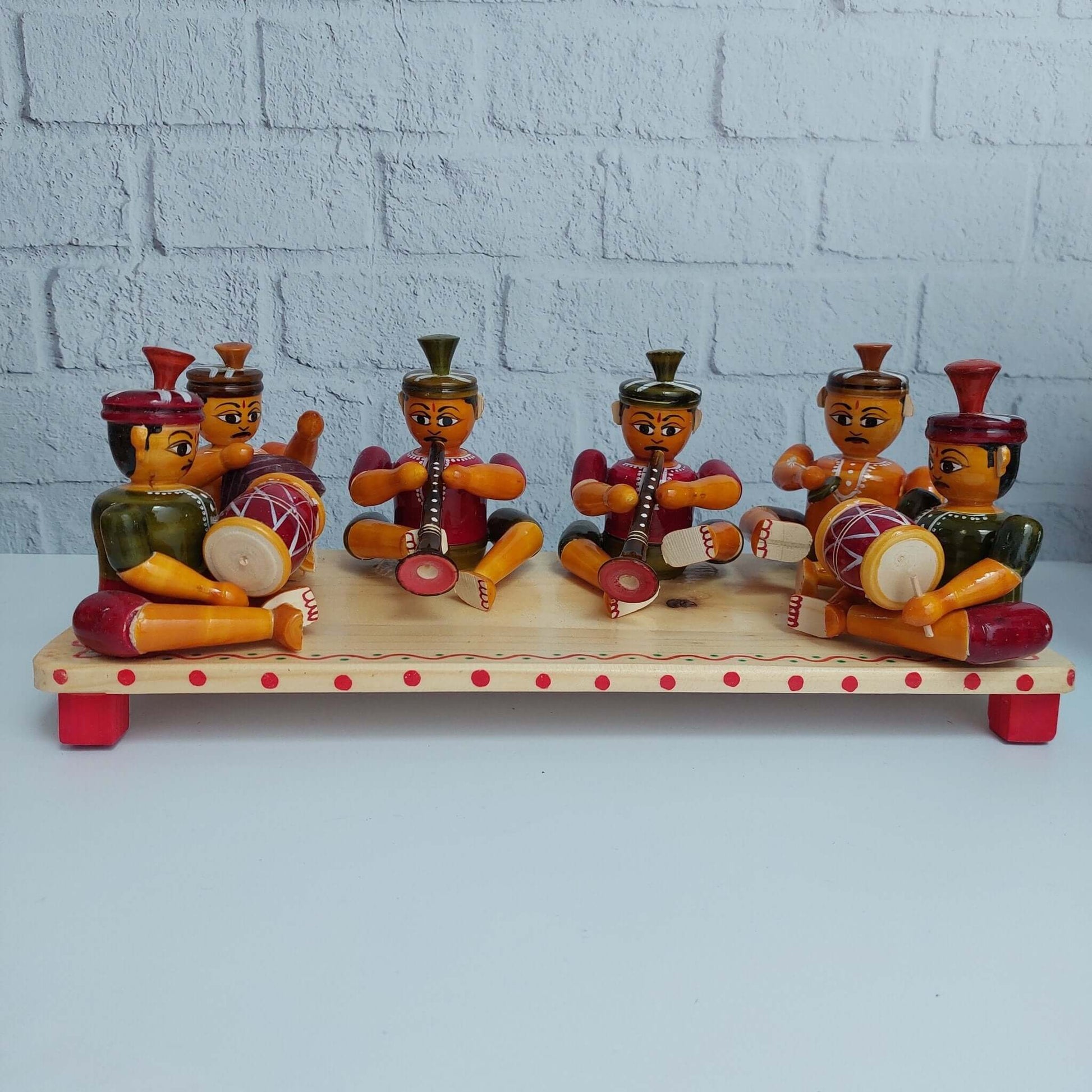 A set of 6 cultural musicians each having a different instrument like nadaswaram, thalam, and dhol, is a treat to the eyes. Rich vibrant colours have been used to highlight their dress and the pagdi. They are light in weight and form a great addition to your home decor.