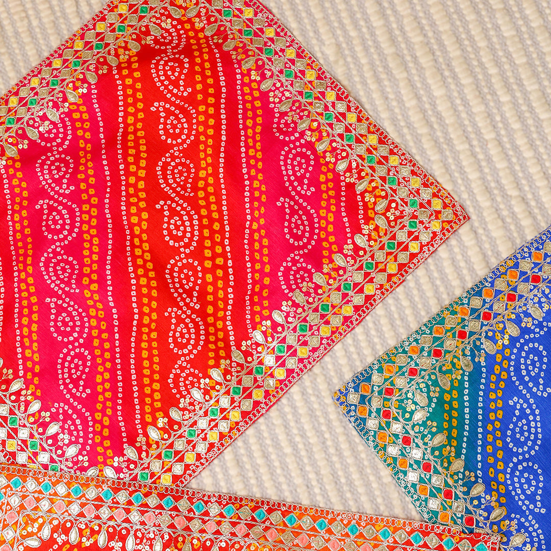 The use of asanas is necessary for worship. This Pooja Aasan Cloth can be used as base of your temple especially on the chowki of any Puja / Hawan or you can place it on Mata ki Chowki, Puja tables, deity thrones, wooden bajot, pedestals etc. Velvet puja aasan are ideal for placing deity idols during puja rituals. It can also be used to cover the head of deity idols.