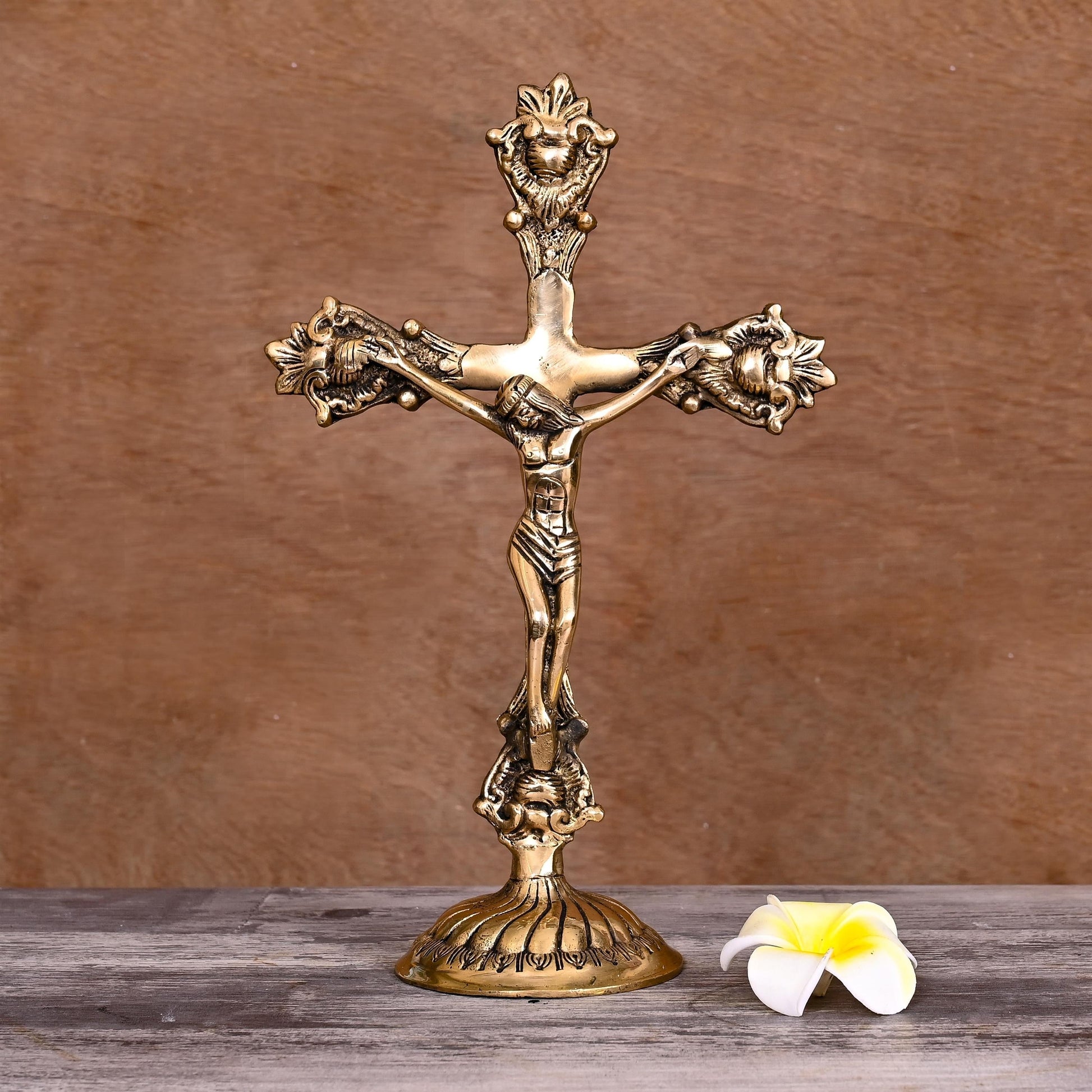 Brass Christian Cross Jesus Christ Statue (12 Inch)
