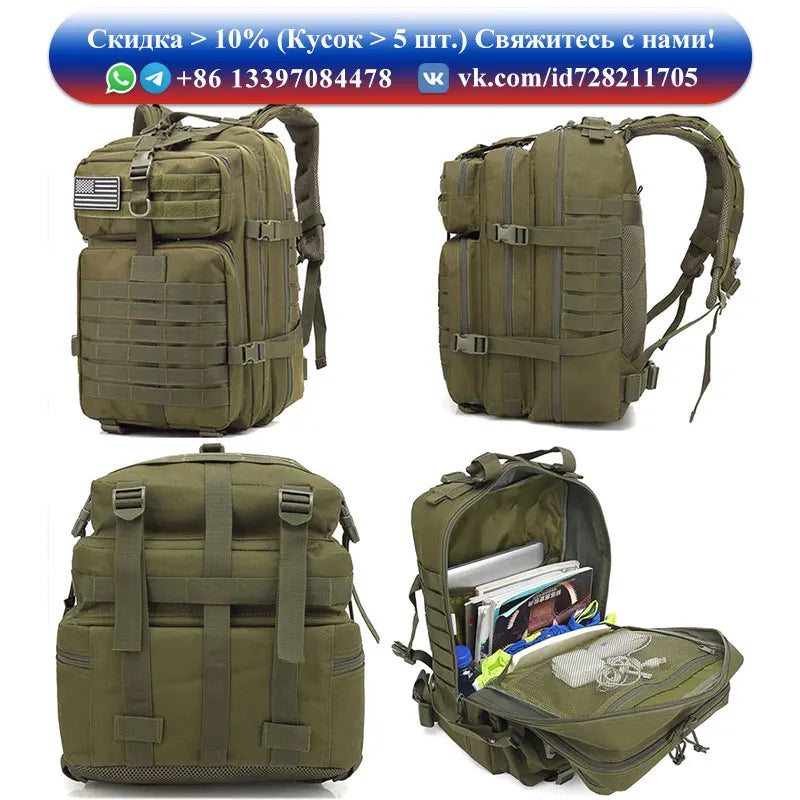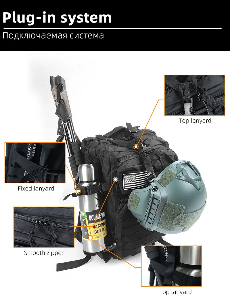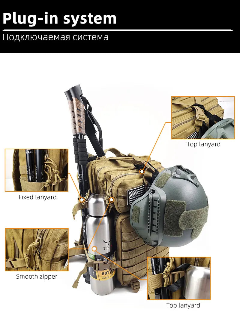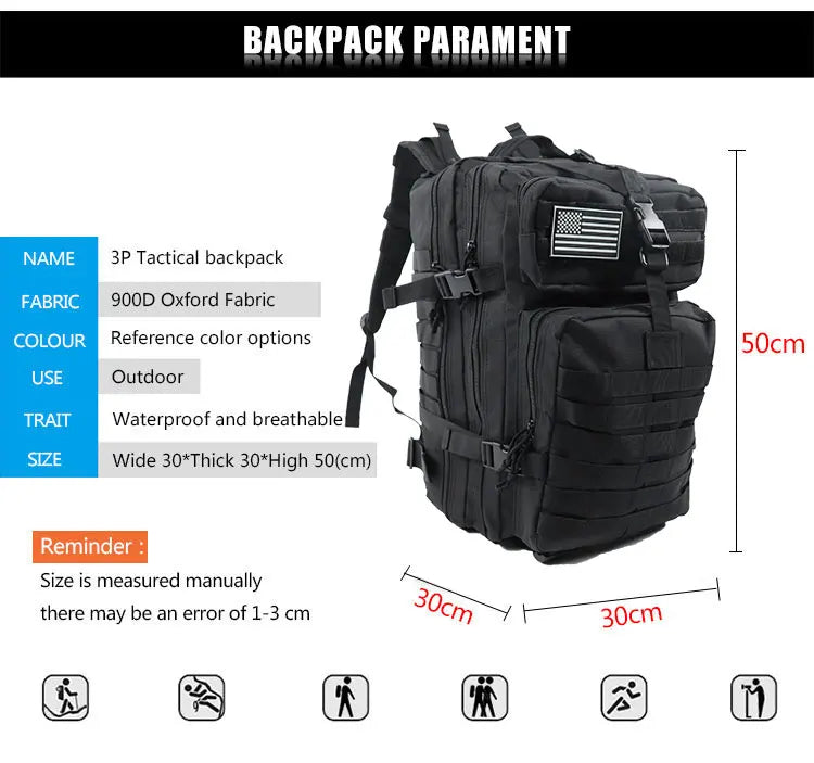 Large Capacity Waterproof Tactical Backpack for Men, 3P Softback, Outdoor Bug Rucksack, Hiking, Camping, Hunting Bags, 50L