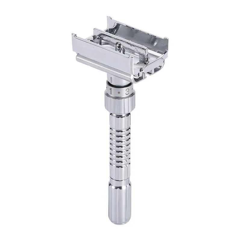 Adjustable Safety Razor for Men – Double Edge Classic Shaver (1–6 Settings) with 5 Blades | Stainless Steel Zinc Alloy