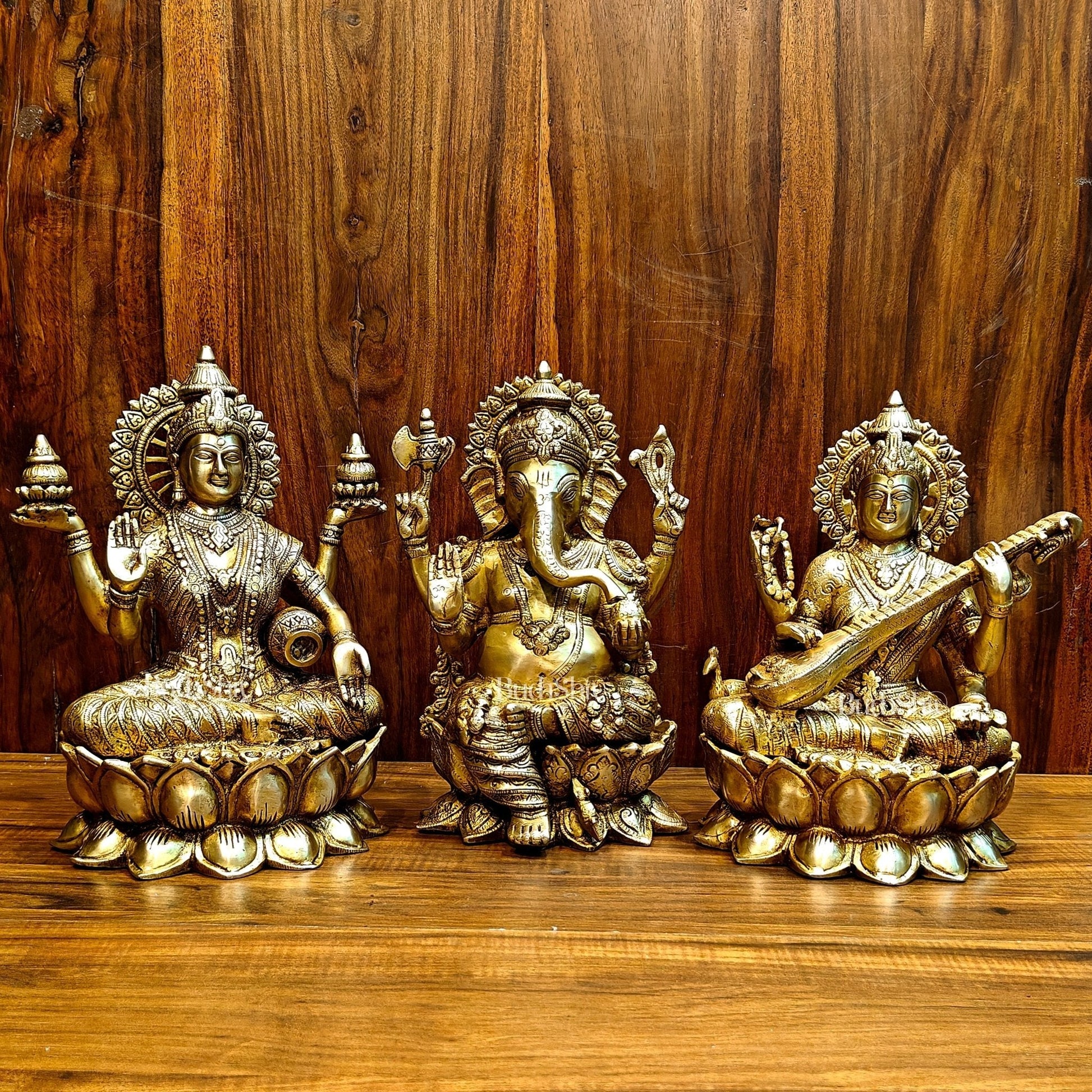 Pure Brass Ganesh Lakshmi Saraswati idols 12 inch