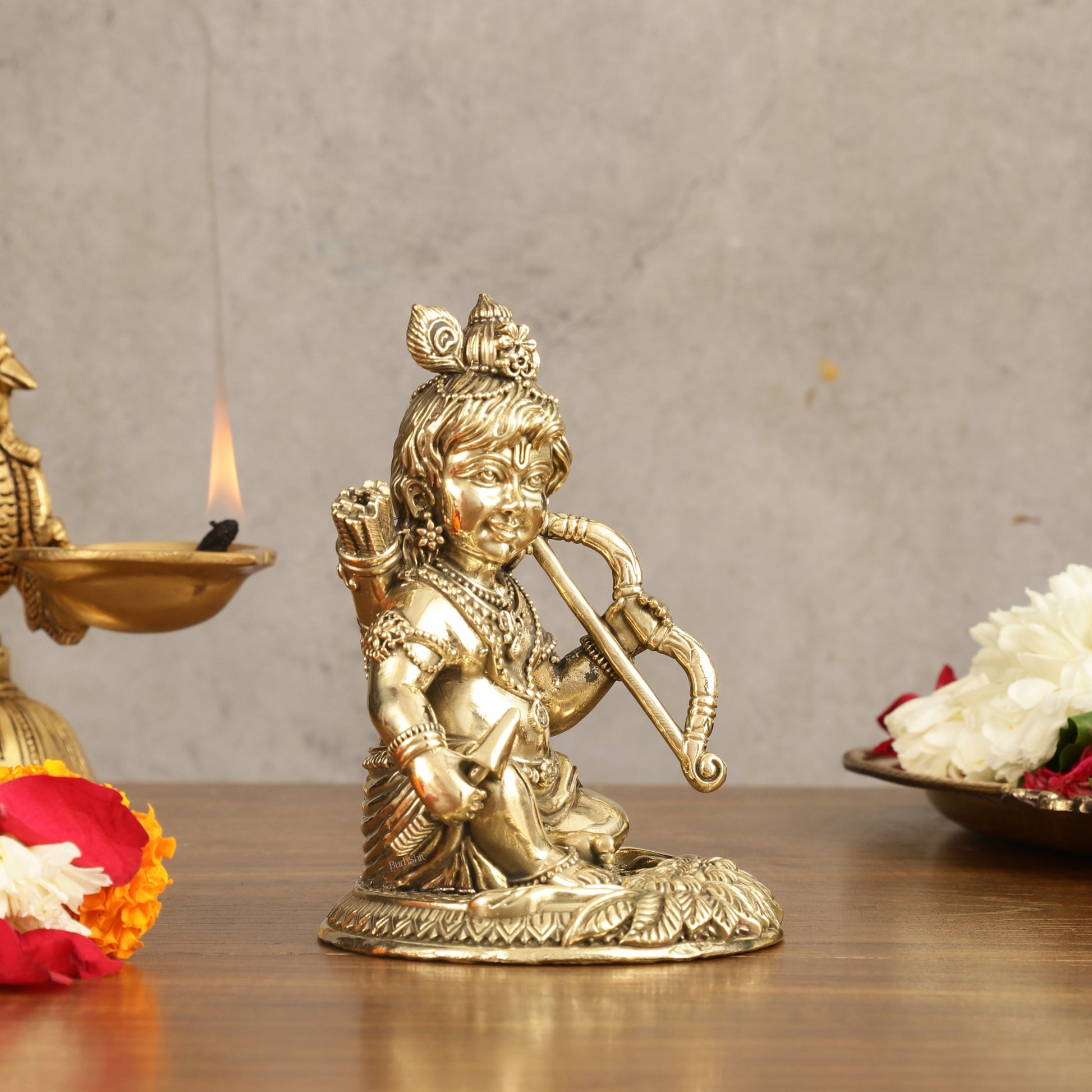 Explore our Pure Brass Seated Ram Lalla Superfine Idol. Measuring 5 inches in height, 4 inches in width, 3.5 inches in depth, and weighing 411 grams, it's perfect for spiritual and decorative purposes.