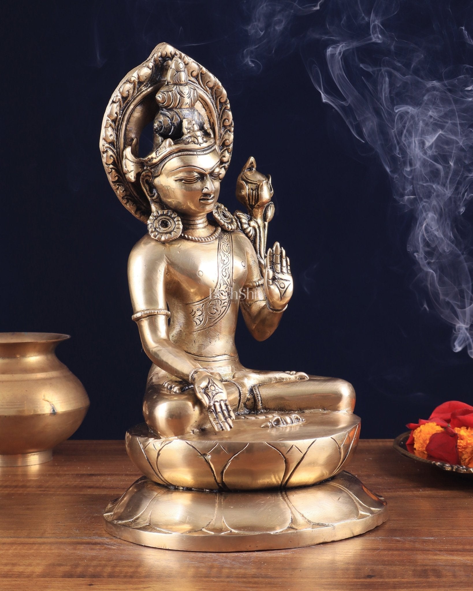 This Pure Brass Lord Indra Dev Statue is a powerful addition to any sacred or decorative space, symbolizing divine authority and grace. Perfect as a gift or personal treasure for invoking strength, protection, and prosperity.