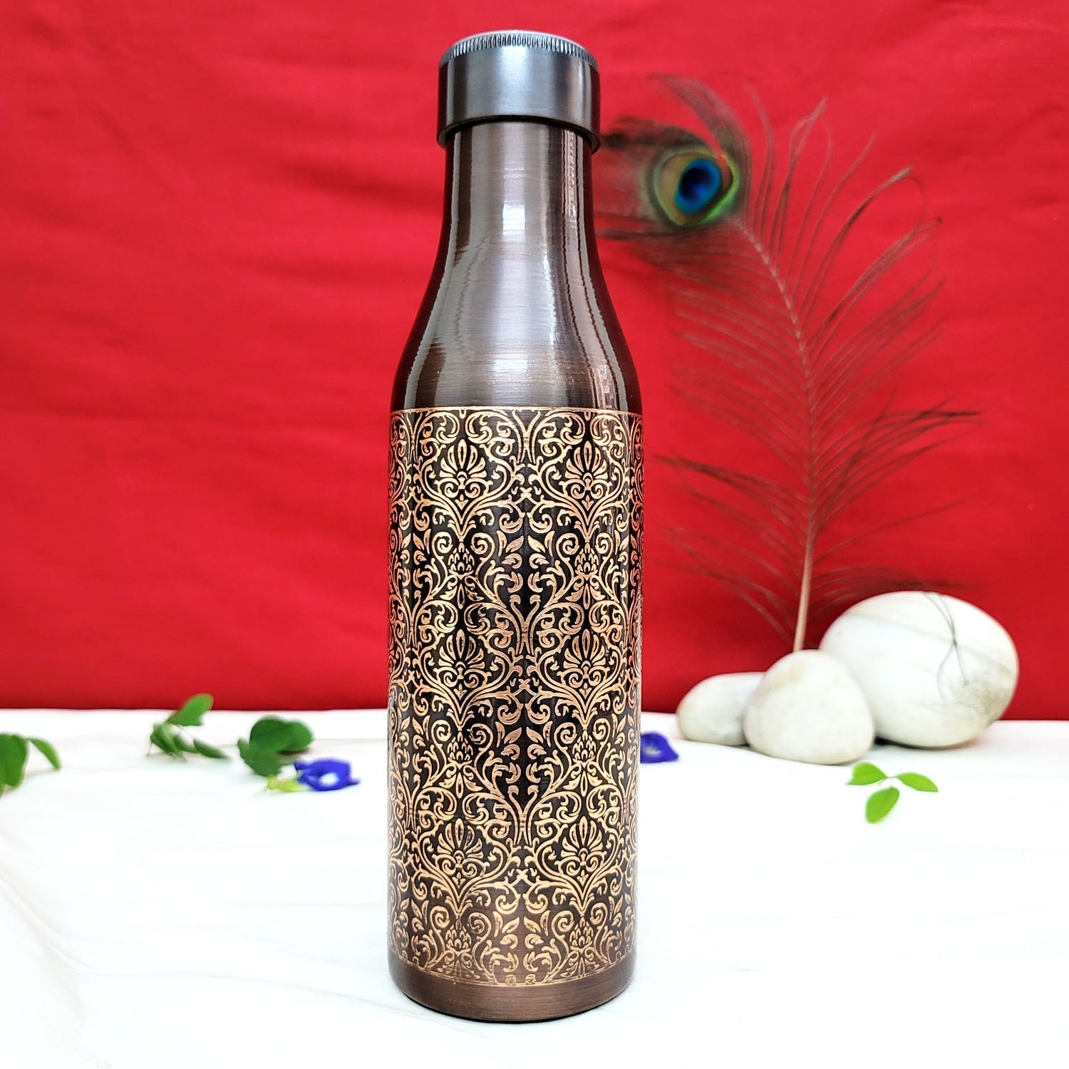 Buy Black Antique Diamond Design  Copper Bottle, a beautiful and functional addition to your bedroom. Crafted from pure-quality copper, the bottle is Antique Engaraved to create a unique and elegant textured surface:-
