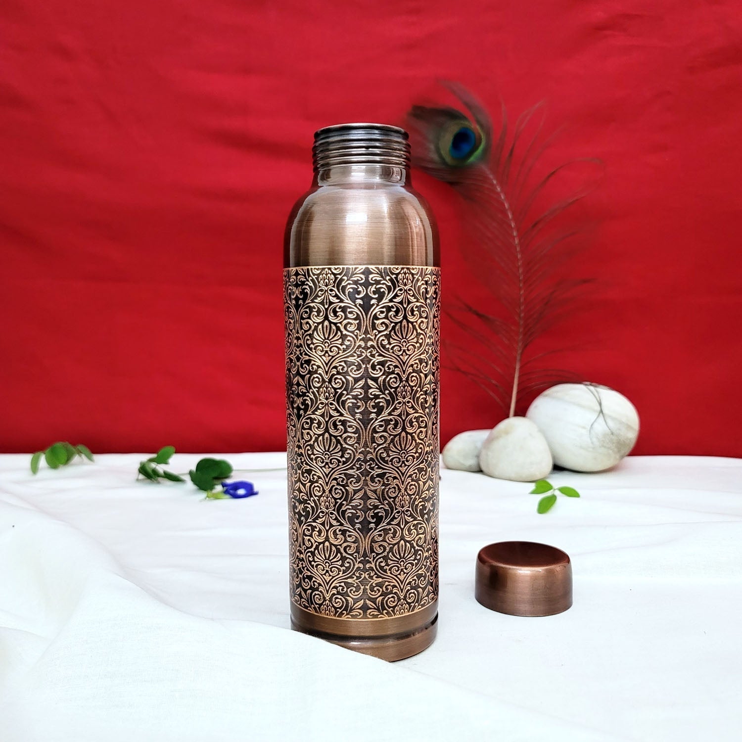 Product Description: Stay hydrated in style with this 1 Litre Pure Copper Water Bottle, featuring a stunning Milton antique engraved design. Crafted from 100% pure copper, it naturally purifies water and adds a touch of elegance to your day.