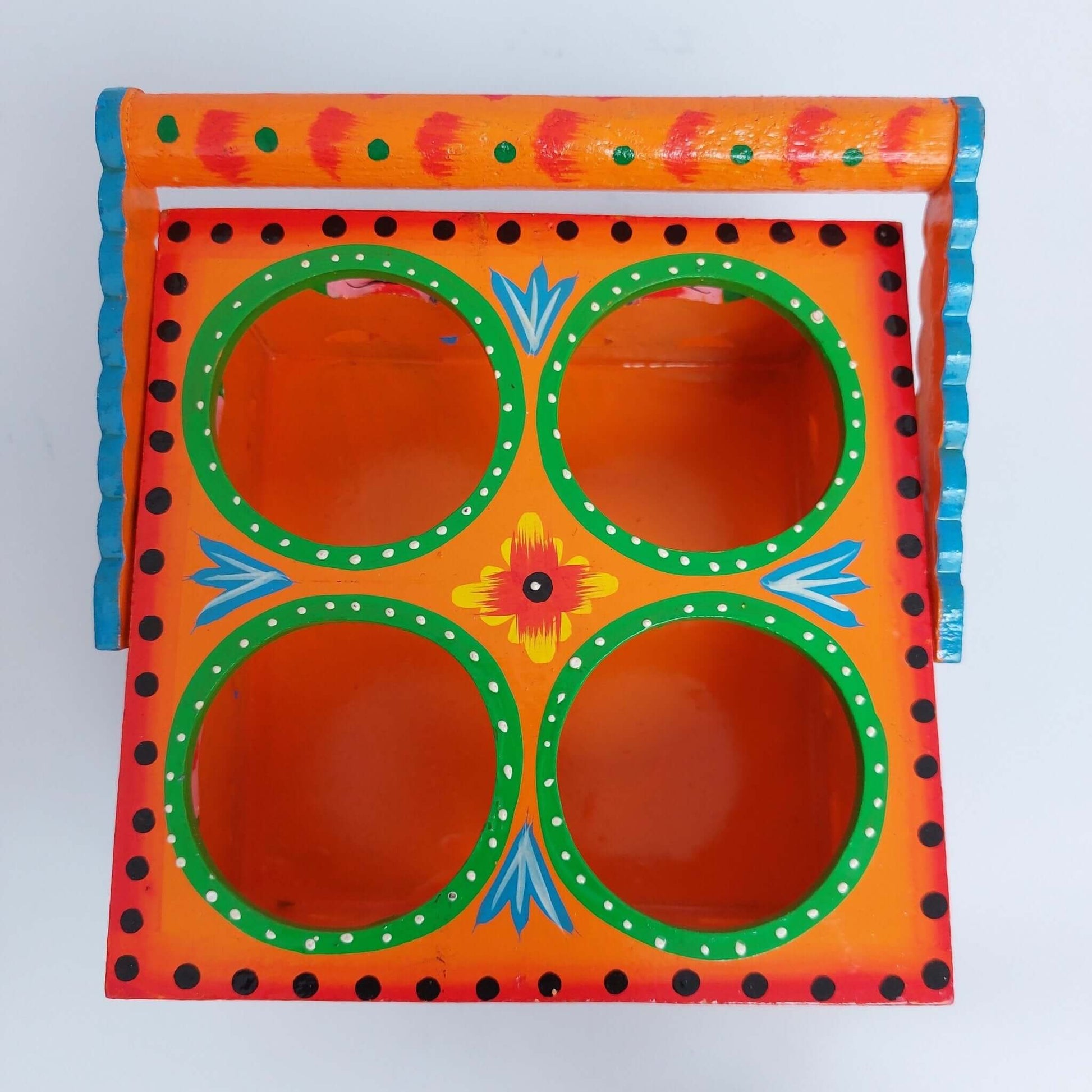 Add a splash of colour and desi chai collection with this beautiful cutting chai stand. The stands are vibrant, bright and have prints of elephants / birds/ parrots adding a traditional touch to it. You can use this to serve chai or coffee!